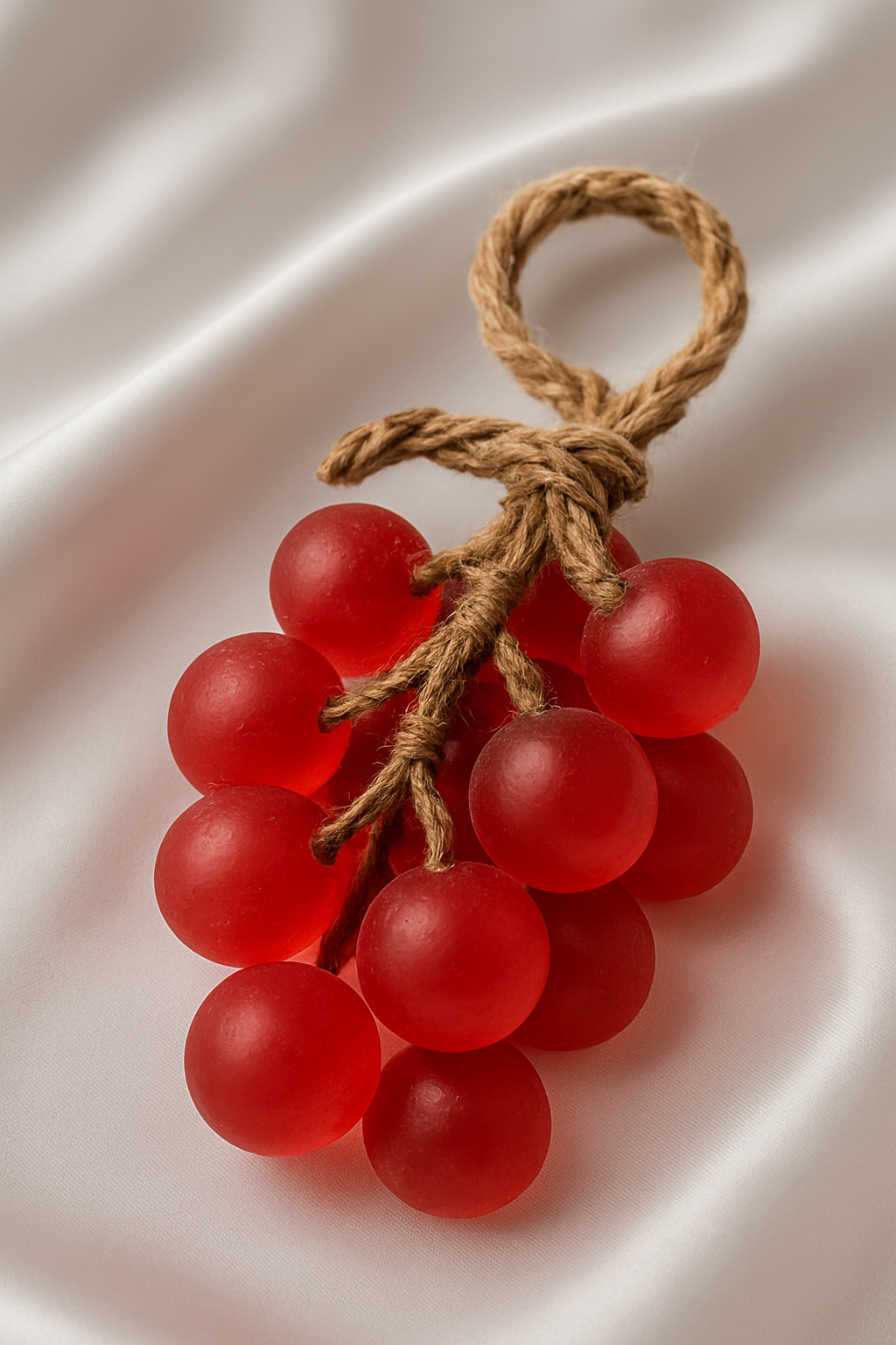 Bu çarpıcı kırmızı üzüm salkımı sabun, banyo ve mutfaklarınıza anında lüks ve romantik bir atmosfer katmak için tasarlandı. Koyu kırmızı ve bordo tonlarındaki üzüm taneleri, özellikle beyaz, krem veya açık renkli yüzeyler üzerinde sergilendiğinde güçlü bir kontrast ve zengin bir görünüm oluşturur.